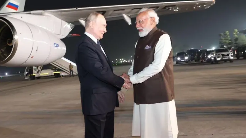 रूस के राष्ट्रपति व्लादिमीर पुतिन 4 दिसम्बर को भारत की आधिकारिक यात्रा पर नई दिल्ली पहुँचे। उन्होंने शाम 7.10उनका यह दौरा भारत–रूस रणनीतिक साझेदारी को नई दिशा देने वाला माना जा रहा है। पुतिन का यह दौरा कई महत्वपूर्ण समझौतों और क्षेत्रीय–वैश्विक मुद्दों पर गहन चर्चा के लिहाज से बेहद अहम है।