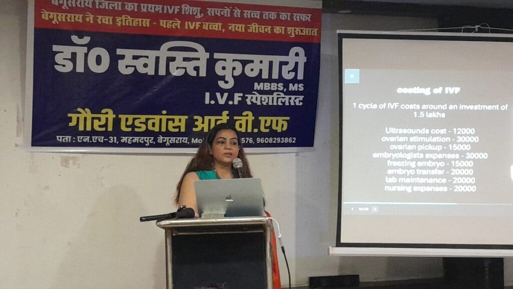बेगूसराय में चिकित्सा क्षेत्र की बड़ी उपलब्धि: बेगूसराय में पहली बार IVF (इन विट्रो फर्टिलाइजेशन) तकनीक से शिशु के जन्म का दावा किया गया है। शहर के महमदपुर स्थित गौरी एडवांस महिला अस्पताल में डॉ. स्वास्ति कुमारी की देखरेख में यह सफलता हासिल हुई। डॉ. ने प्रेस वार्ता कर इसकी जानकारी देते हुए बताया कि 19 अप्रैल को इस प्रक्रिया से स्वस्थ बच्चे का जन्म हुआ है। हालांकि, माता-पिता की सहमति नहीं मिलने के कारण उनकी पहचान सार्वजनिक नहीं की गई। डॉक्टर के अनुसार, बच्चा पूरी तरह स्वस्थ है और किसी प्रकार की जटिलता नहीं है।