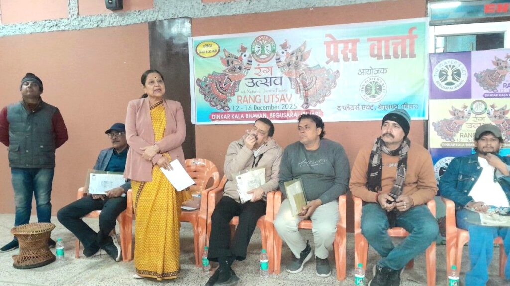 बेगूसराय में इस वर्ष भी कला और संस्कृति का सबसे बड़ा रंगमंचीय उत्सव आयोजित होने जा रहा है। प्रतिष्ठित संस्था ‘द प्लेयर्स एक्ट’ द्वारा चतुर्थ राष्ट्रीय नाट्य महोत्सव – ‘रंग उत्सव 2025’ का आयोजन 12 से 16 दिसंबर 2025 तक दिनकर कला भवन में किया जाएगा। इसको लेकर आज संस्था की ओर से एक प्रेस वार्ता आयोजित की गई, जिसमें कार्यक्रम के विस्तृत विवरण साझा किए गए। प्रेस वार्ता में संस्था के अध्यक्ष समीर शेखर, संरक्षक डॉ. स्वप्ना चौधरी, समाजसेवी विश्वरंजन सिंह राजू, रंग निर्देशक डॉ. अमित रौशन, रंगकर्मी अभिजीत कुमार मुन्ना, निर्देशक गुंजन सिन्हा, कुंदन सिन्हा, सचिव चन्दन सोनू, संचालनकर्ता दीपक कुमार सहित कई रंगकर्मी उपस्थित थे।
