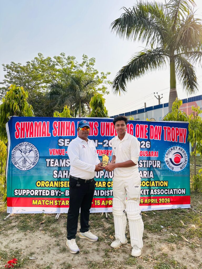 बरौनी रिफाइनरी टाउनशिप में चल रहे सेंट्रल जोन बीसीए मेंस श्यामल सिन्हा अंडर-16 टूर्नामेंट में समस्तीपुर की टीम ने शानदार प्रदर्शन करते हुए सहरसा को 9 विकेट से हरा दिया। यह मुकाबला 15 अप्रैल 2026 को खेला गया, जिसमें समस्तीपुर ने हर विभाग में बेहतर खेल दिखाया।