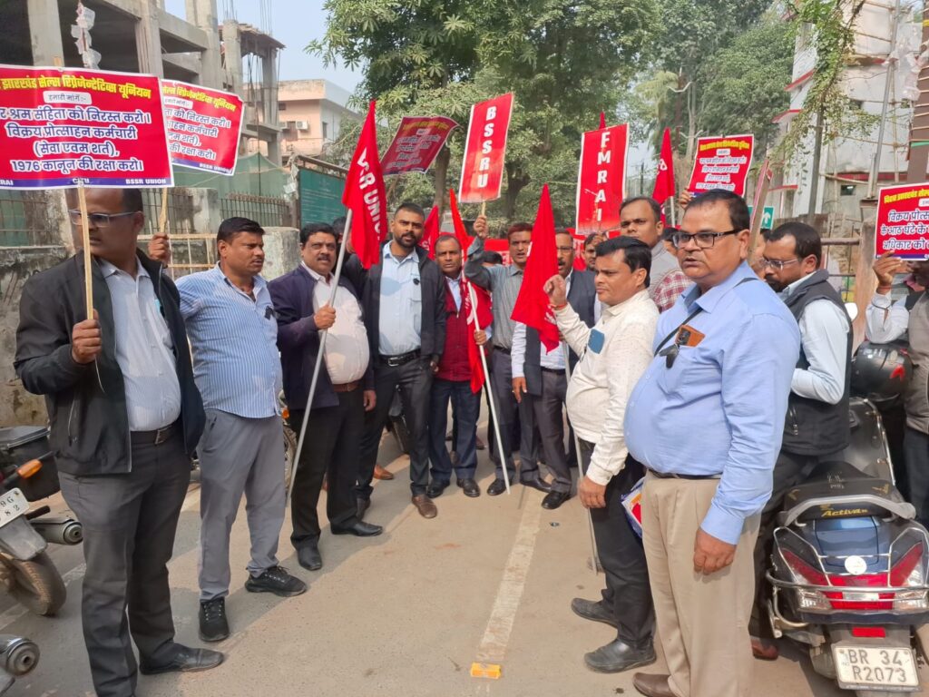 बेगूसराय, 24 नवंबर 2025। केंद्र सरकार द्वारा अधिसूचित किए गए चार नए श्रम कानूनों को “मजदूर विरोधी और मालिक पक्षीय” बताते हुए बीएसएसआर यूनियन ने आज जोरदार विरोध प्रदर्शन किया। यूनियन के सचिव राकेश कुमार एवं संयुक्त महामंत्री आर.एस. रॉय, प्रदीप कुमार, राज्य सचिव ने बयान जारी कर सरकार से इन श्रम कोड्स को अविलंब वापस लेने की मांग की।