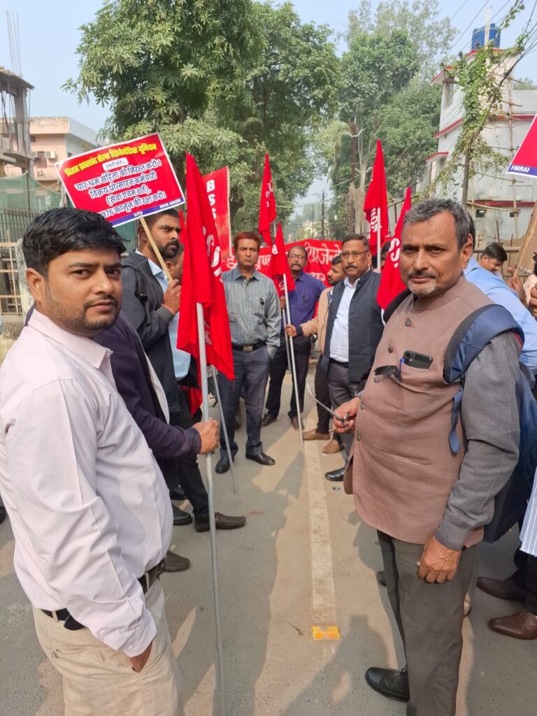 🔥 समाहर्ता कार्यालय के पास श्रम कानून की प्रति जलाई गई : 24 नवंबर को हड़ताली चौक (समाहर्ता कार्यालय के पास) पर यूनियन के लगभग 40 सदस्य एकत्रित हुए और श्रम कोड्स की प्रति जलाकर कड़ा विरोध दर्ज कराया। नेताओं ने कहा कि—नए श्रम कोड्स के तहत कई महत्वपूर्ण पुराने कानून, जैसे Sales Promotion Employees Act 1976, को निरस्त कर दिया गया है।काम के घंटे 8 से बढ़ाकर 12 घंटे तक किए जा सकते हैं, जिसे कोई मजदूर मना नहीं कर सकता। यह ILO चार्टर का सीधा उल्लंघन है। दो प्रकार की न्यूनतम मजदूरी लागू हो जाएगी, जिससे असमानता बढ़ेगी। ट्रेड यूनियन का निबंधन लगभग असंभव बना दिया गया है। श्रमिकों का मूल अधिकार हड़ताल का अधिकार खत्म कर दिया गया है। कॉन्ट्रैक्ट एवं फ्रेंचाइज़ सिस्टम बढ़ने से ग्रेच्युटी व सामाजिक सुरक्षा नगण्य रह जाएगी।सरकार का उद्देश्य “काम करो, पैसा पाओ” की नीति लागू कर श्रमिकों को बंधुआ मजदूरी की ओर धकेलना है।