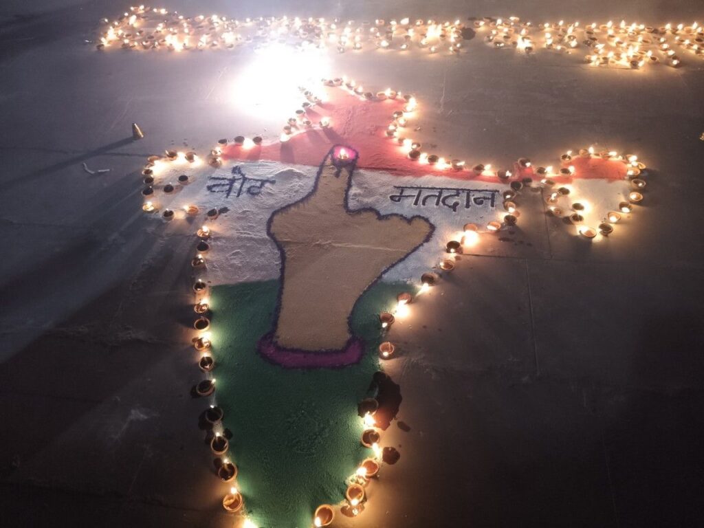 दीपोत्सव के माध्यम से मतदाता जागरूकता अभियान : इस बीच, स्वीप कोषांग बेगूसराय के तत्वावधान में 18 अक्टूबर 2025 को सिमरिया धाम में विशेष दीपोत्सव कार्यक्रम के माध्यम से मतदाता जागरूकता अभियान का आयोजन किया गया। कार्यक्रम का शुभारंभ अपर समाहर्ता बृज किशोर चौधरी, जिला प्रोग्राम पदाधिकारी आईसीडीएस रश्मि कुमारी, खेल पदाधिकारी श्याम सहनी, और सहायक निदेशक (दिव्यांगजन) अभिजीत सोनल ने दीप प्रज्वलित कर किया। सैकड़ों दीपों से प्रज्वलित सिमरिया धाम ने मतदाता जागरूकता का उजाला फैलाया। अधिकारियों ने लोगों से 6 नवंबर 2025 को होने वाले मतदान में उत्साहपूर्वक भाग लेने की अपील की और कहा कि “एक मत, देश के भविष्य की दिशा तय करता है।” कार्यक्रम में मतदाताओं को मतदान प्रक्रिया, वीवीपैट के उपयोग, और शत-प्रतिशत मतदान के महत्व के बारे में विस्तार से बताया गया। इस दौरान DHEW टीम, वन स्टॉप सेंटर, आंगनवाड़ी सेविकाएं, आशा कार्यकर्ता, जीविका दीदियां सहित बड़ी संख्या में लोग उपस्थित रहे और “शत-प्रतिशत मतदान ही सच्चे लोकतंत्र की पहचान है” का संदेश दिया। स्वीप कोषांग द्वारा जिले भर में मतदाता जागरूकता के लिए लगातार रचनात्मक कार्यक्रम आयोजित किए जा रहे हैं, ताकि हर पात्र मतदाता मतदान दिवस पर अपने मताधिकार का प्रयोग अवश्य करे।