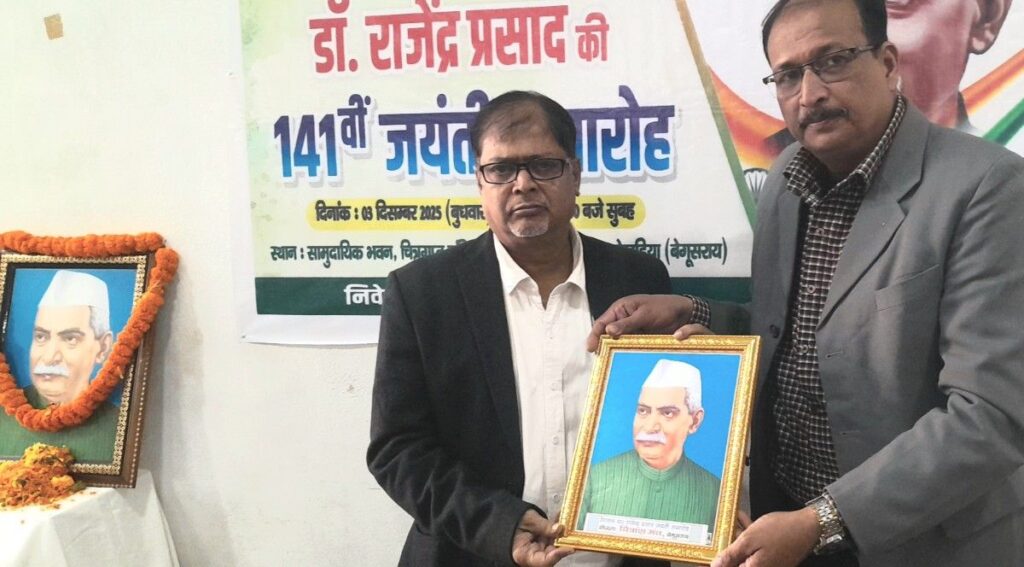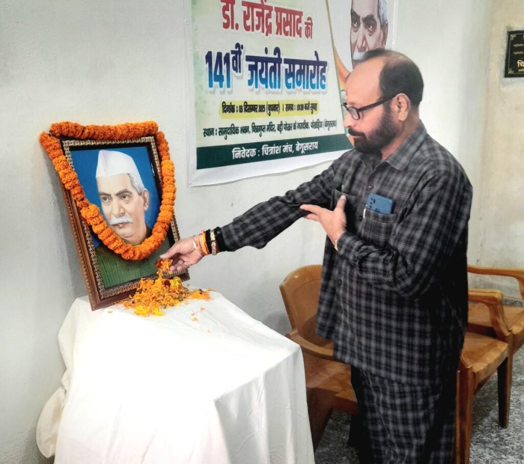 बेगूसराय में देशरत्न डॉ. राजेंद्र प्रसाद की 141वीं जयंती बड़े उत्साह और श्रद्धाभाव के साथ मनाई गई। शहर के विभिन्न स्थानों पर लोगों ने राजेंद्र बाबू की प्रतिमा पर माल्यार्पण कर उनके आदर्शों पर चलने का संकल्प लिया। इसी क्रम में चित्रांश मंच द्वारा बड़ी पोखर स्थित चित्रगुप्त सामुदायिक भवन में भव्य जयंती समारोह का आयोजन किया गया, जिसमें जिलेभर के गणमान्य लोगों ने भाग लिया।