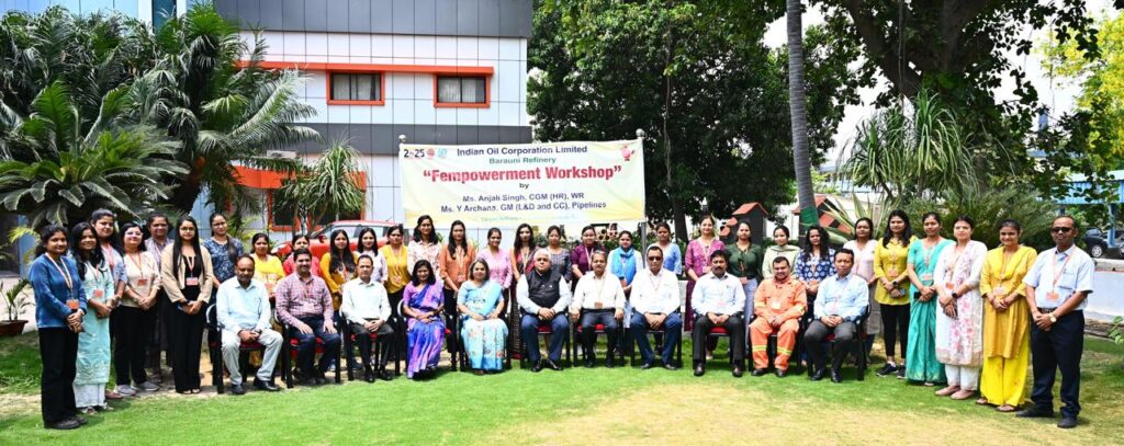 22 मई 2025 को इंडियन ऑयल बरौनी रिफाइनरी के अधिगम एवं विकास विभाग में एक दिवसीय महिला सशक्तिकरण कार्यशाला” फेमपावरमेंट” का आयोजन किया गया। कार्यक्रम का उद्देश्य संगठन के भीतर समावेशिता के दृष्टिकोण को मजबूत करना था ताकि महिला कर्मचारी आत्मविश्वास और समान अवसर के साथ आगे बढ़ सकें।कार्यशाला का उद्घाटन कार्यकारी निदेशक एवं रिफाइनरी प्रमुख सत्य प्रकाश ने कार्यकारी निदेशक (परियोजना एवं कोर ग्रुप) संजय रायजादा, कार्यशाला की मुख्य अतिथि वक्ता मुख्य महाप्रबंधक (मानव संसाधन) मार्केटिंग अंजलि सिंह एवं महाप्रबंधक (अधिगम वविकास एवं कॉपोरेट संचार) पाइपलाइन वाई अर्चना, बरौनी रिफाइनरी के अन्य वरिष्ठ अधिकारियों एवं महिला कर्मचारियों की उपस्थित में किया।